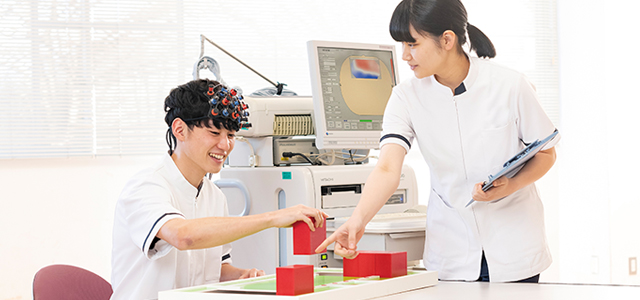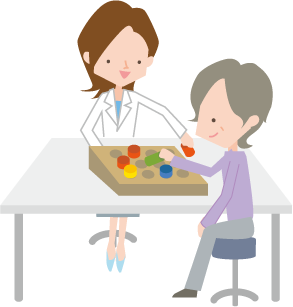 身体障害を持つ人に対して、日常的な身の回りの活動(食事・入浴など)や社会的活動(交流・仕事など)を回復するための訓練を行うほか、精神障害を持つ人の自立や社会復帰を支援します。障害の特性やその人の好みにより、①食事などの日常動作 ②木工・絵画などの創作 ③遊び ④スポーツなどを用いるほか、自助具の開発や住宅環境の改善を行います。